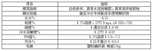 本產(chǎn)品廣泛適用于建材行業(yè),特種水產(chǎn)飼料,方便食品,速凍食品等行業(yè)。具有冷水溶脹