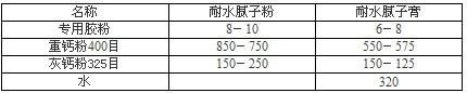 一、產(chǎn)品簡介 耐水膩?zhàn)訉S媚z粉是吸收國外高新技術(shù),選用多種高分子有機(jī)材料和天然礦植物纖維經(jīng)科學(xué)配制而成。用它配制的粉狀、膏狀耐水膩?zhàn)樱缓兹、苯系?、重金屬 、 不含水泥、 石膏、堿性低,有利乳膠漆的裝飾,技術(shù)性能指標(biāo)高于JC/T3049-1998N型標(biāo)準(zhǔn),有害物質(zhì)限量低于GB-18582-2001標(biāo)準(zhǔn).是聚乙烯醇縮醛膠耐水膩?zhàn)痈聯(lián)Q代的綠色,環(huán)保型產(chǎn)品。 二、產(chǎn)品特性 快速溶解性—冷水?dāng)嚢杓纯墒褂谩?BR>良好的分散性—膩?zhàn)犹畛淞弦追稚噭颉⑸a(chǎn)效率高。 高觸變性—刮板代料上墻不流墜、不丟料。 強(qiáng)保水性—防止膩?zhàn)涌焖俑稍?有良好的施工性。 良好的抗裂性—確保膩?zhàn)硬婚_裂、不殼皮、不剝落。 較強(qiáng)的粘接性—遇水、受潮不膨脹、不掉粉、不剝落。 儲(chǔ)存穩(wěn)定性好—成品膩?zhàn)觾?chǔ)存期可達(dá)一年。 節(jié)約能源—加量少,減少運(yùn)輸量。冷水作業(yè)。不用蒸、少污染。 三、理化指標(biāo) 外觀:灰白色粉末 PH值:7(中性) 含水量百分之≤5 粘度百分之2mpa.s:1000 ±100 四、使用方法 1、做耐水膩?zhàn)臃,將配方量的專用膠粉分成數(shù)份,依次向干粉混料機(jī)中投入重鈣粉數(shù)袋、灰鈣粉數(shù)袋、專用膠粉1份,照此循環(huán)直至將料全部投完,攪拌30分鐘即可。 2、做膏狀耐水膩?zhàn)樱簩⑴浞搅康乃湃肽z液制備攪拌罐中,開啟攪拌,將配方量的專用膠粉緩緩?fù)度霐嚢韫拗,攪?分鐘即將膠液放到膩?zhàn)訑嚢铏C(jī)中,投入定量的重鈣粉,灰鈣粉攪拌至均勻膏體無粉團(tuán)即可。 五、參考配方