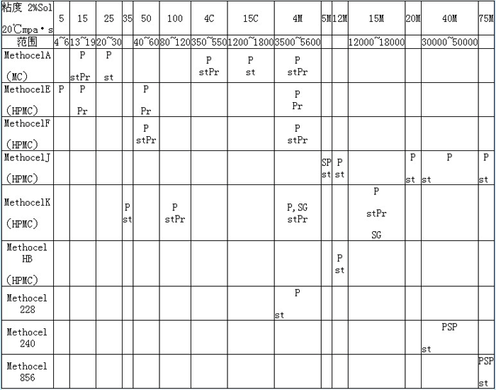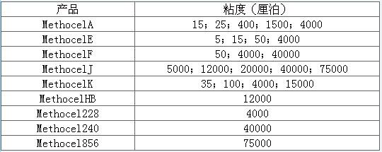 表4有關(guān)Methocel纖維素醚產(chǎn)品的產(chǎn)品類型和粘度