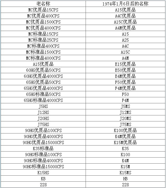 表6產(chǎn)品的新老牌號(hào)對(duì)照表